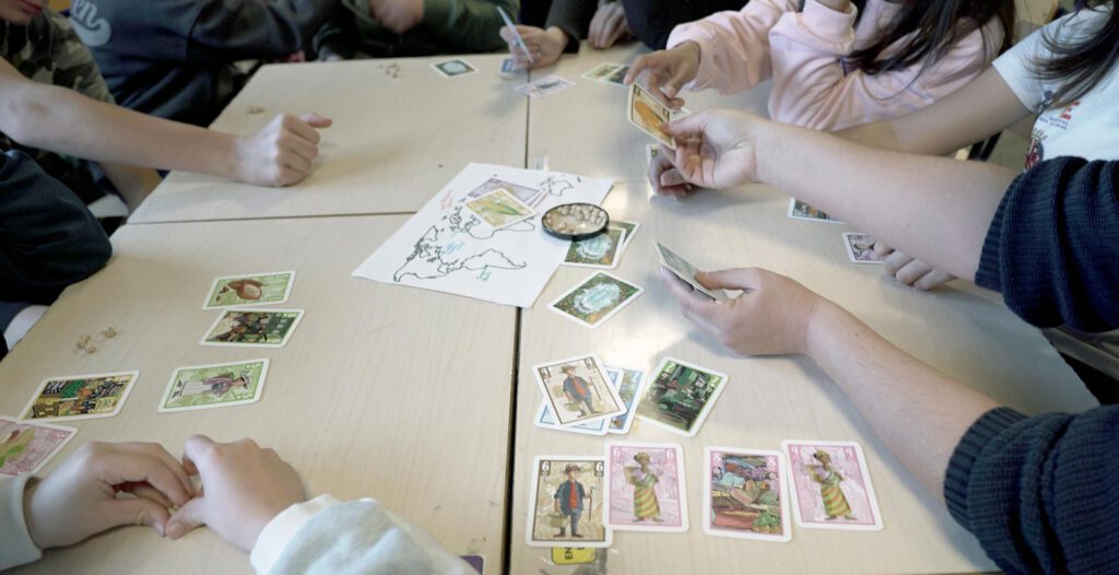 La baralla compta amb 6 pals (cadascú amb un color i símbol característic) numerats de l’1 al 9 que representin 6 ciutats del món. Cada pal està format per 3 vegetals, 3 personis i 3 mercats. Amb aquesta baralla és podin jugar molts jocs tradicionals de cartes, t’animem a experimentar amb ella. Però hem dissenyat 4 jocs originals que tracten de conscienciar sobre la importància de comprar productes de proximitat en mercats locals. Estigues en qualsevol part del món, sempre podràs aproximar-t’a el mercat a comprar verdures i fruites cultivades per agricultors i agricultors locals.
