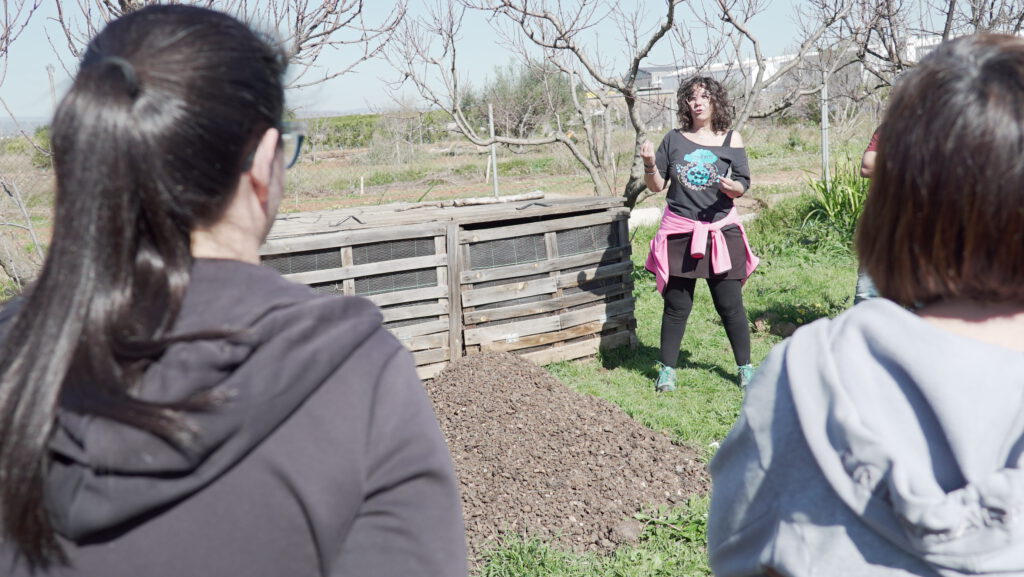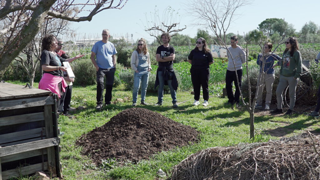 És van abordar tems com l’aigua, l’agroecologia, la bena de proximitat, el producte local i els varietats d’espècies presents a l’horta. És va realitzar un recorregut per l’espai, amb parades en diferents punts per explicar cada element i fomentar la participació del professorat.