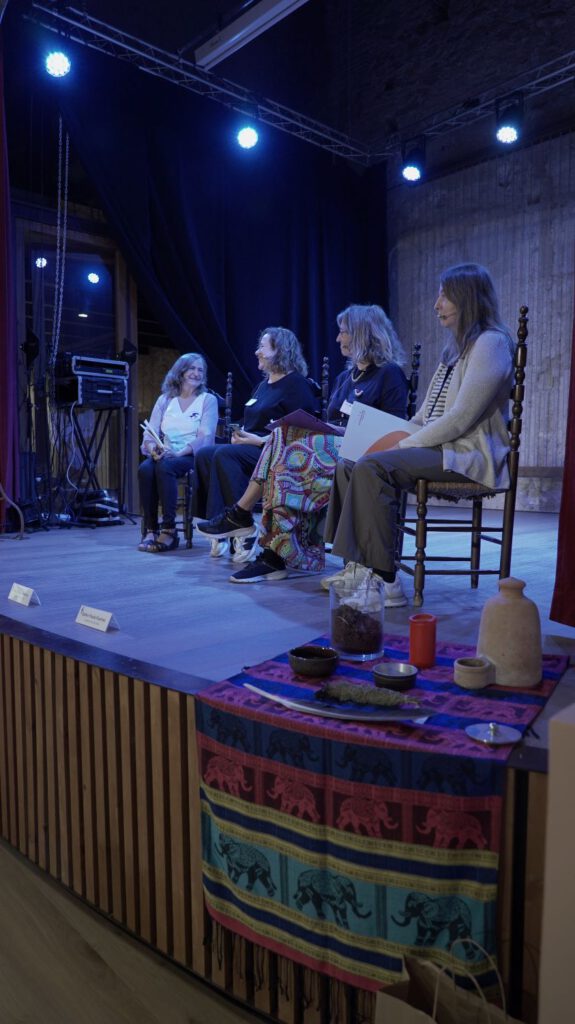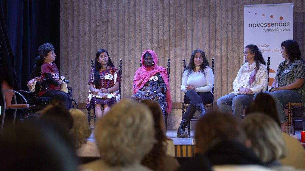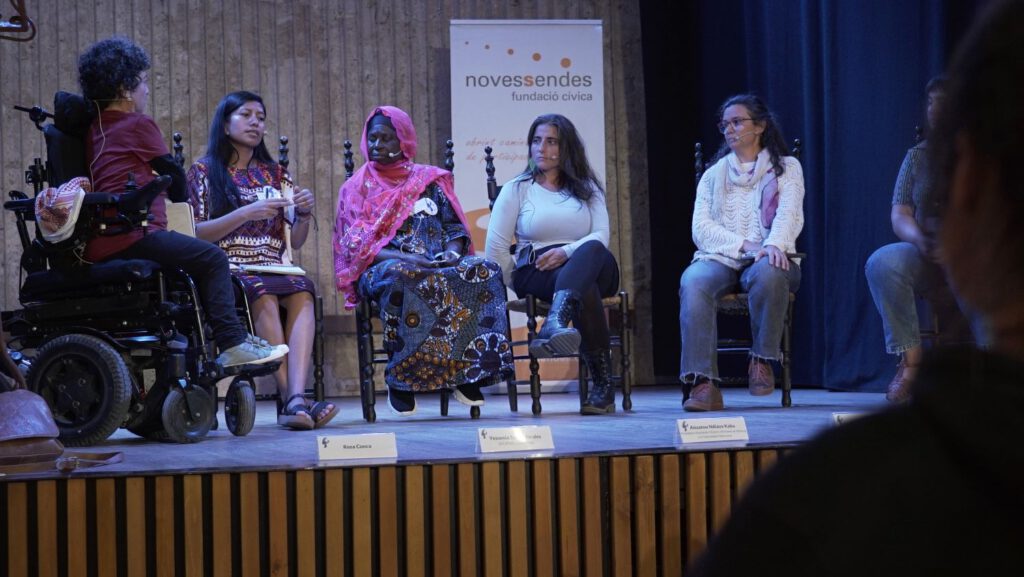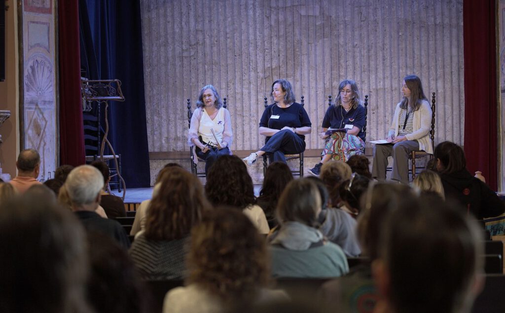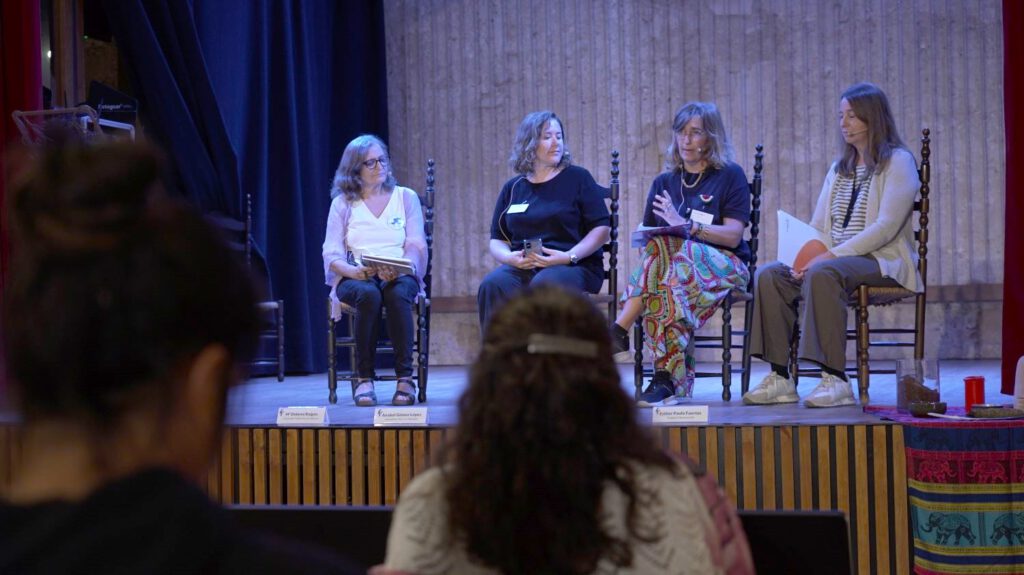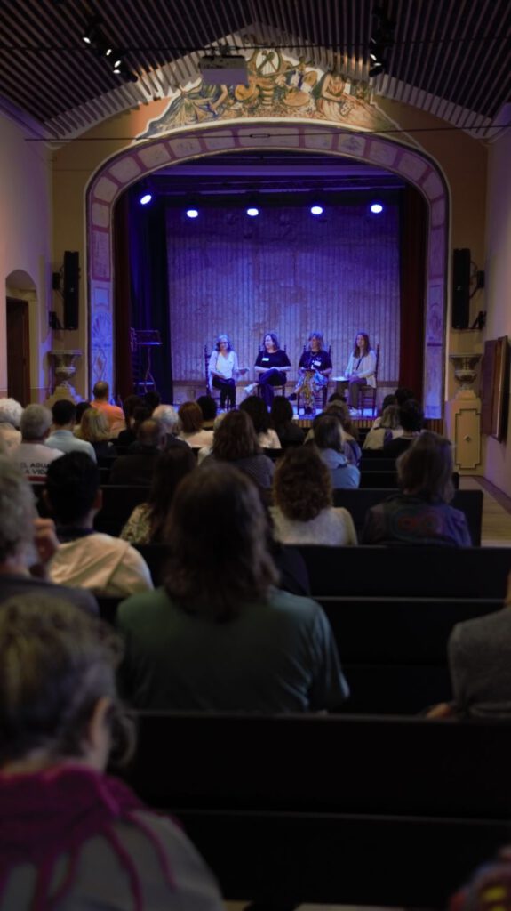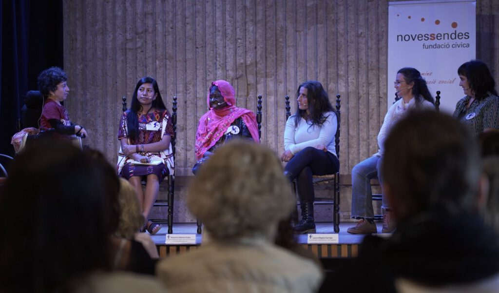 Rosa Conca (modera); Yessenia Salas Morales (AFOPADI, Guatemala); Aissatou Ndiaye Kaba (presidenta Asociación Mujeres Africanas de Paterna y la Comunidad Valenciana); Francesca Pérez i Badal (La Biofranquesa); Alba Cebrian (Malaerba);
