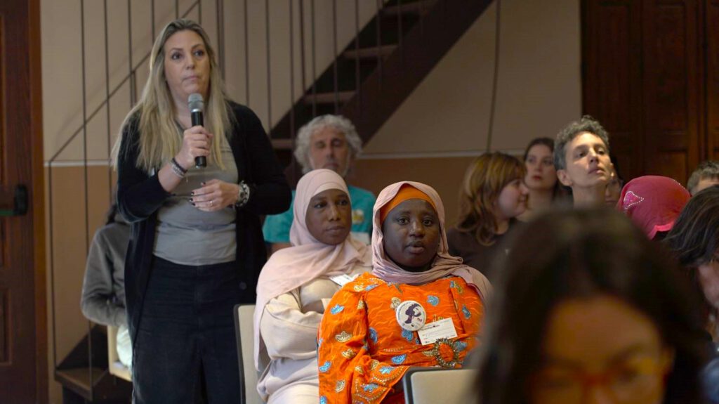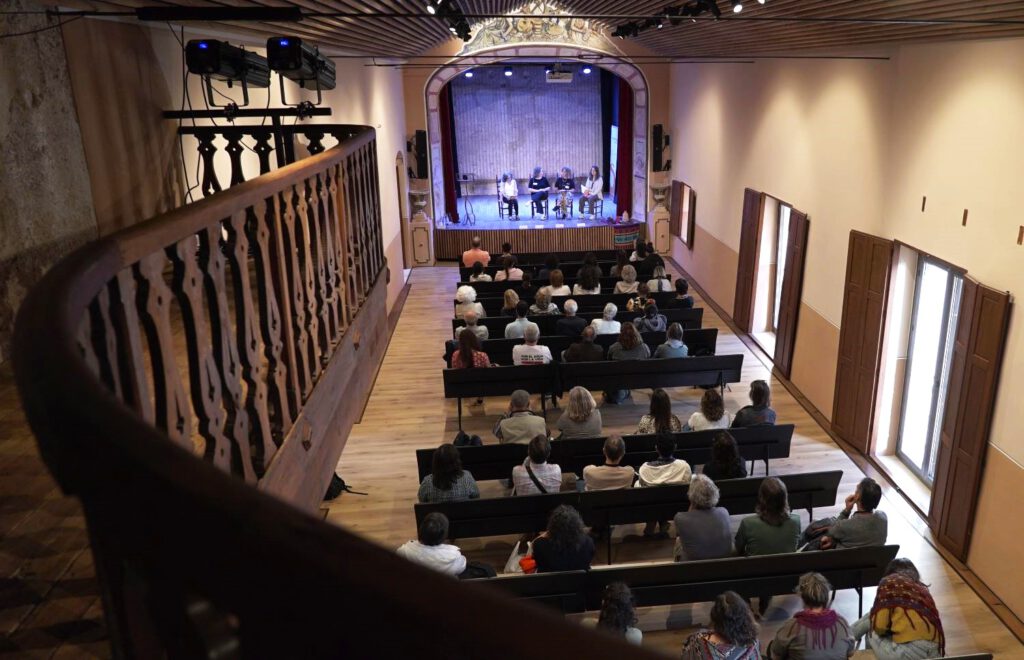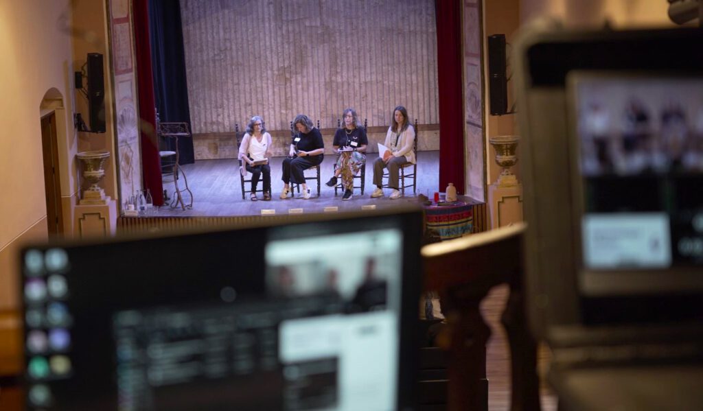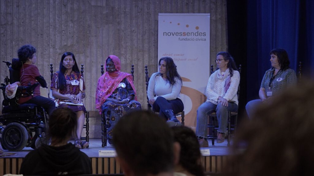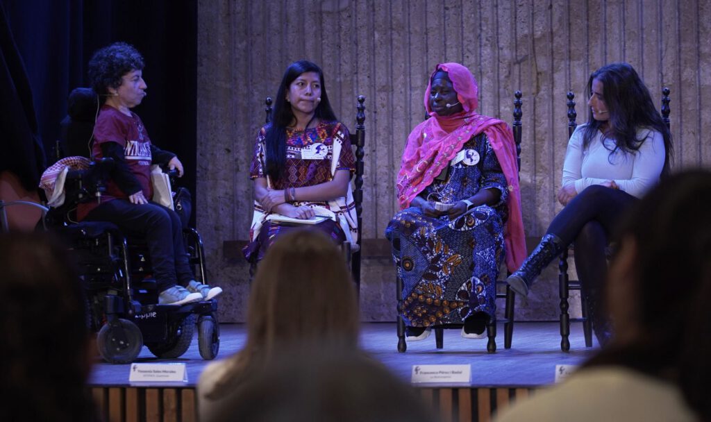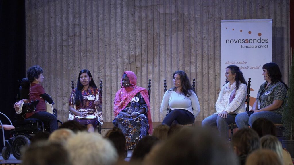 Rosa Conca (modera); Yessenia Salas Morales (AFOPADI, Guatemala); Aissatou Ndiaye Kaba (presidenta Asociación Mujeres Africanas de Paterna y la Comunidad Valenciana); Francesca Pérez i Badal (La Biofranquesa); Alba Cebrian (Malaerba);