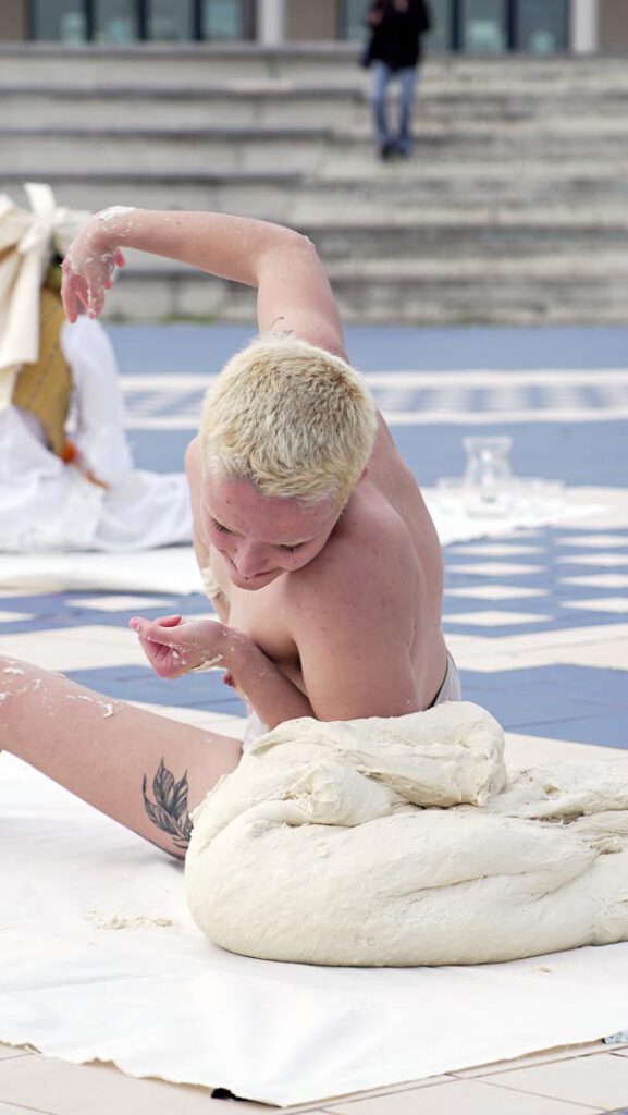 A partir d’estes converses i d’altres sessions guiades per Terrones, l’alumnat va ser convidat a desenvolupar performances centrades en els “comuns alimentaris”, utilitzant com a elements simbòlics les llavors, l’aigua i la terra. Com a resultat, es van dur a terme deu accions performatives, en les quals els estudiants van reflexionar sobre la necessitat de transformar el sistema agroindustrial liberalitzat i van promoure una visió crítica i compromesa amb la sostenibilitat, la justícia social i els recursos comunitaris.