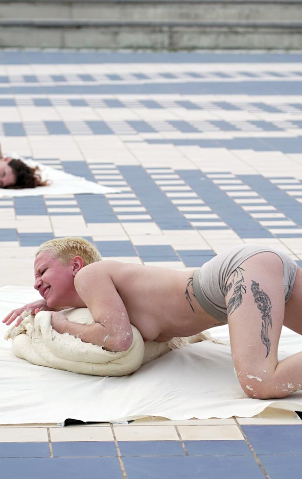 “La massa és impossible de moure, és informe, canviant i pes. És cos. Ho rebregue, ho ofegue, ho forade i ho partisc. Balle desesperada a la recerca dels límits de ser cos. I ací, en l’esgotament, em trobe, em reconec.”
